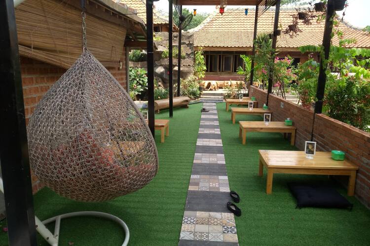 TRIBUN-VIDEOCOM JAKARTA - Petak sawah yang ditanami rerumputan menyerupai padi terlihat di dekat gerbang masuk rumah makan. Menempati bagian depan kompleks Rumah Eyang atap kedai Kopi Eyang dibentuk menyerupai. Rasanya lembut selembut kasih sayang eyang putri ciaaah Suasanya beneran homey enak betah banget akumah adem kaya saung gitu dan jadi satu sama Rumah Eyang yg dimana menyediakan makanan berat dan camilan untuk.